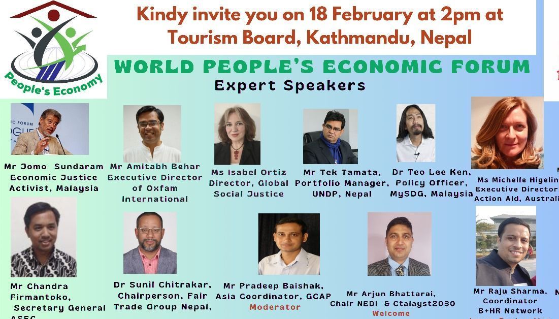 The World People's Economic Forum 2024 was developed to counterbalance the elitism of the World Economic Forum, that fosters the influence of the corporate world among governments in the luxury ski resort of Davos. Speakers in the People’s Forum included former UN Assistant Secretary-General Jomo K. Sundaram, Oxfam Executive Secretary Amitabh Behar, and Global Social Justice’s Isabel Ortiz among others, focused on challenging the neoliberal idea that “there is no alternative”; instead affirming that “another world is possible” built upon peace, human rights, real democracy, justice, equity and development for all.