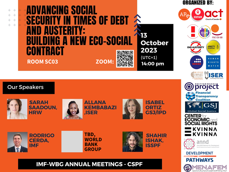Recent research (for instance, by Oxfam, GSJ, and HRW) analyzing IMF programs show that, far from “mitigating” austerity measures, IMF social spending floors, fail to address the systemic negative impacts of their policy conditionalities, thus exacerbating inequalities. As an alternative approach, the panel explored how the World Bank and IMF could conceive their interventions not just as technical safety nets for the poor, but as an effort to support human rights within a new eco-social contract. Watch